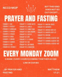 The North Central California District (NCCD) Messengers of Peace invite all youth and young adults to join us for a dedicated Month of Prayer & Fasting throughout February. Each church in the district will take turns leading designated days of fasting and intercession, covering our generation, communities, and ministries in prayer.